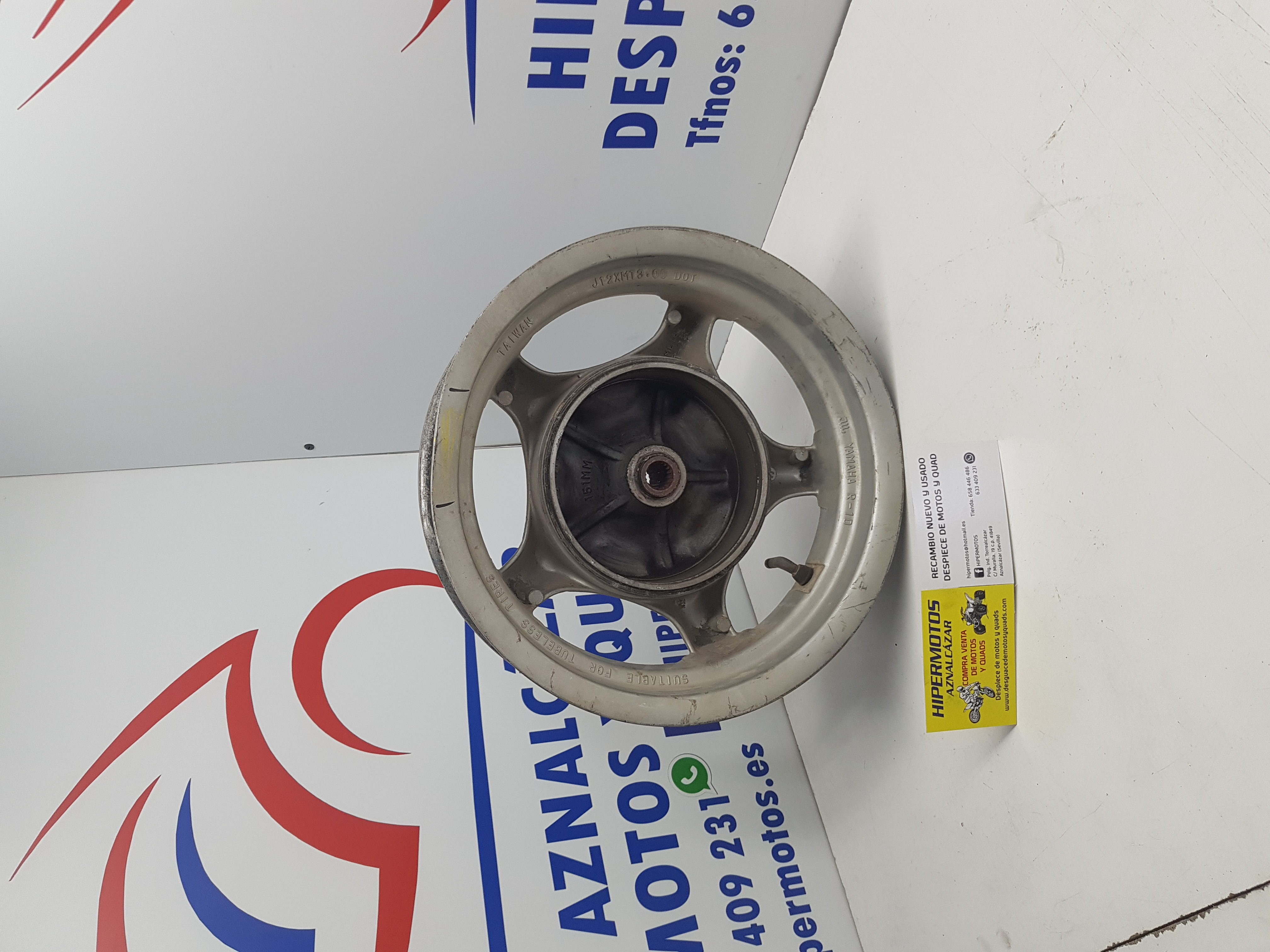 LLanta trasera Yamaha Cygnus, con un pequeño llantazo
